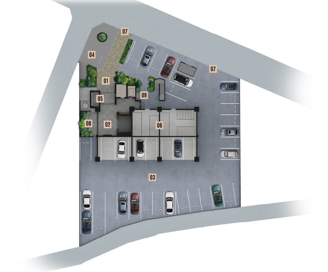 広い敷地を活かして全33邸に対し全37台分の駐車場を確保し、設置率は112%。2台駐車も可能な安心のプランで、快適なカーライフをサポートします。