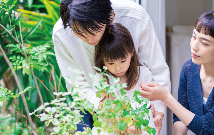 南向きの陽光溢れるバルコニーでは、広さを活用し本格的なガーデニングを自在に満喫。ご家族のコミュニケーションや食育の一環にもなります。