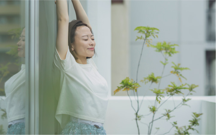 バルコニーにマットを敷いて、心を整えるヨガや健康づくりに役立つピラティス、気軽なストレッチなどを愉しみませんか。