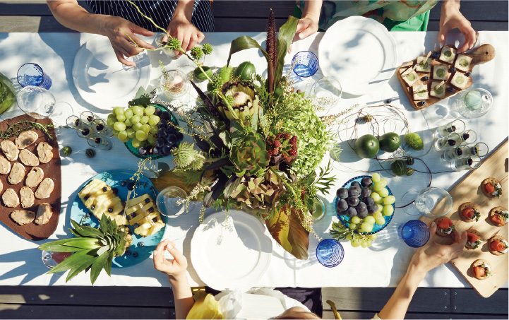 お洒落な椅子やテーブルにこだわり、昼下がりにはティータイムを、週末にはリビングと一体化しパーティー空間の一部としても利用可能。