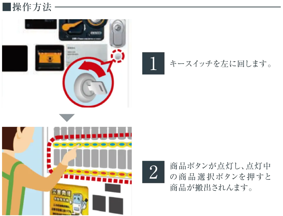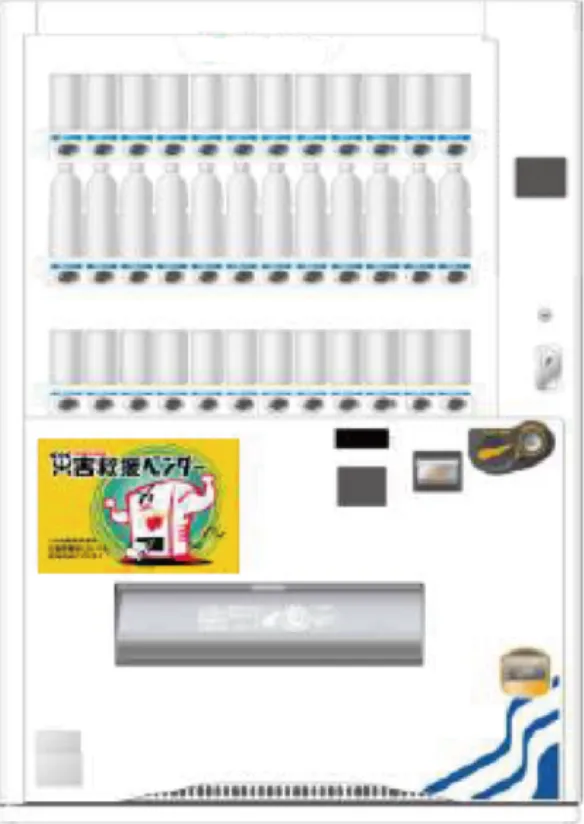 非常時に無償で製品を提供できる自動販売機をエントランスに設置。平時は普通の自動販売機として使用できます。