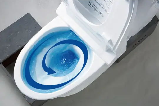 強力な水流が便器鉢内のすみずみまで回り、少ない水でもしっかり汚れを洗い流します。