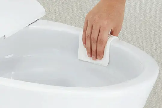 便器のフチを丸ごとなくし、サッとひと拭き、お掃除ラクラクです。