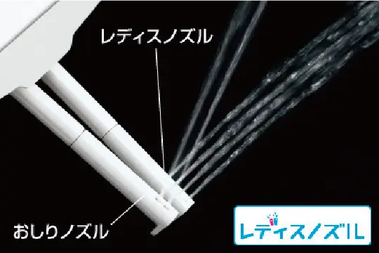 INAXはノズルが2本。おしり洗浄用ノズルとは別に、女性にやさしいビデ洗浄用ノズルを搭載しました。