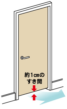 開き戸の下部に1㎝程度のすき間を設けるアンダーカットドアにすることで、24時間換気システムの換気経路を確保しています。