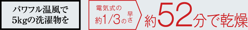 5kg の洗濯物なら電気式に比べ約1/3の時間で乾燥!
