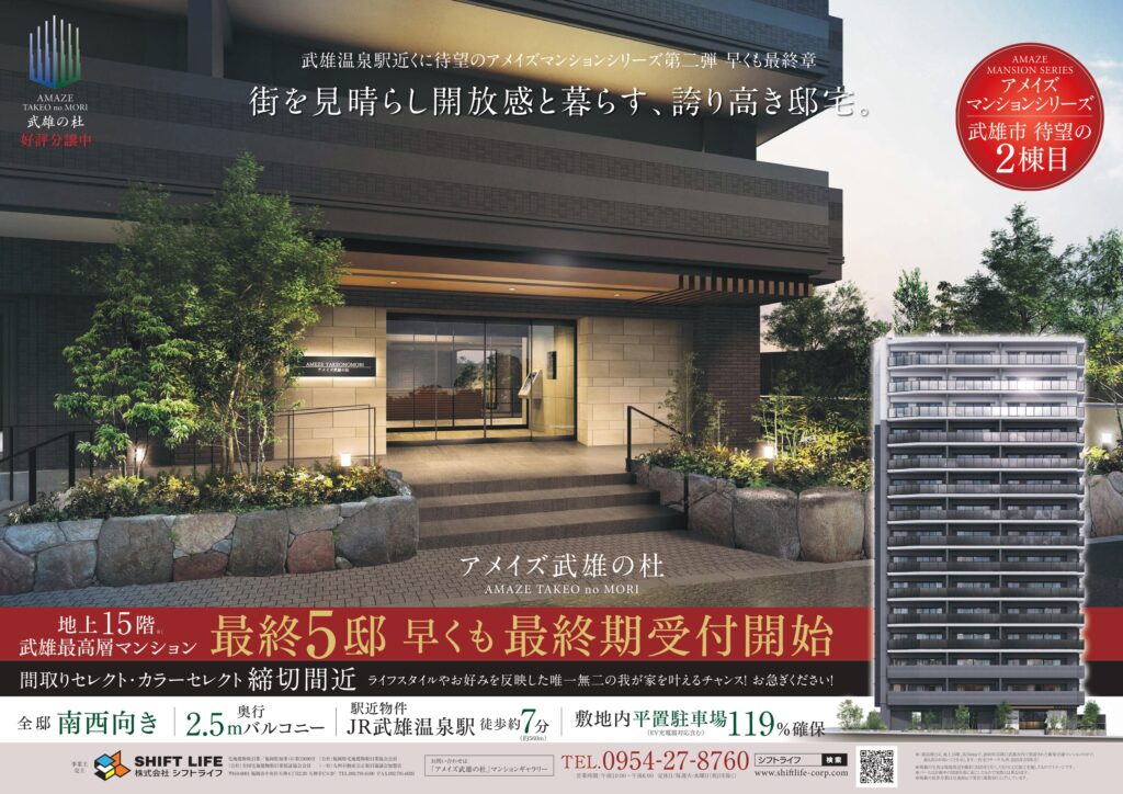 この度、「アメイズ武雄の杜」において最終期の受付を開始いたしました。