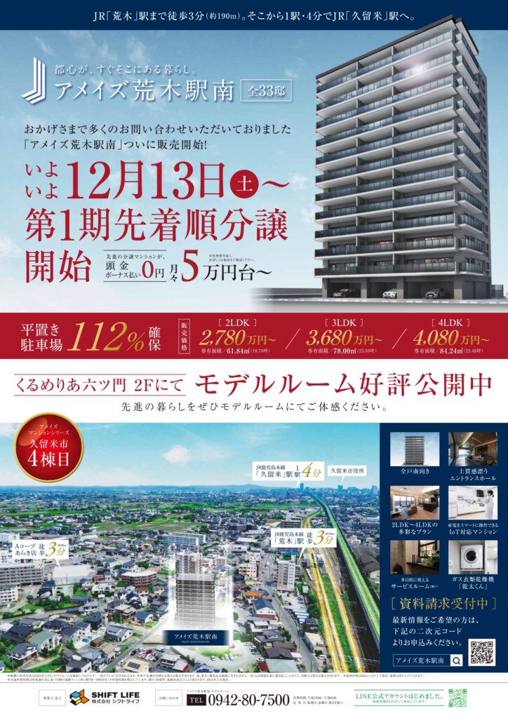 全33邸・全戸南向きレジデンス「アメイズ荒木駅南」が、